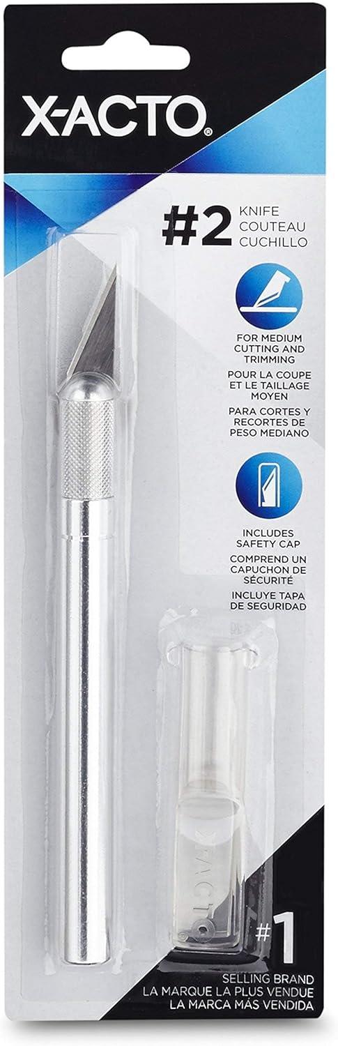 Make precise cuts in a variety of materials with the X-ACTO #2 Precision Knife with Safety Cap. The included #2 large fine point blade is crafted for sharpness and strength, and the medium-weight aluminum handle enables you to make agile cuts with ease. This X-ACTO knife easily cuts through medium- to heavy-weight materials such as paper, metal, plastic, film, and wood. An easy-change blade system lets you swap blades quickly to meet the needs of any project, while the included safety cap makes for worry-free storage.