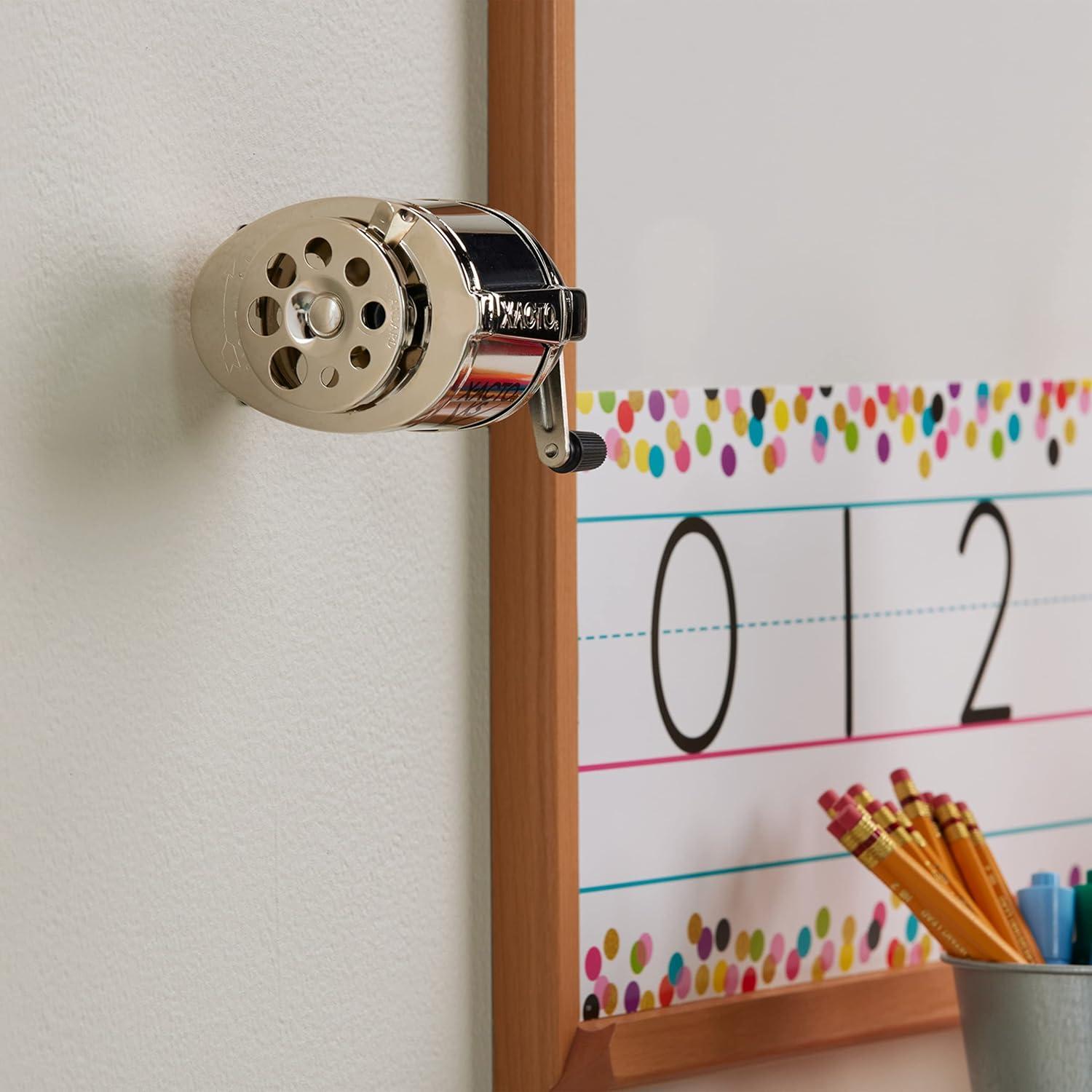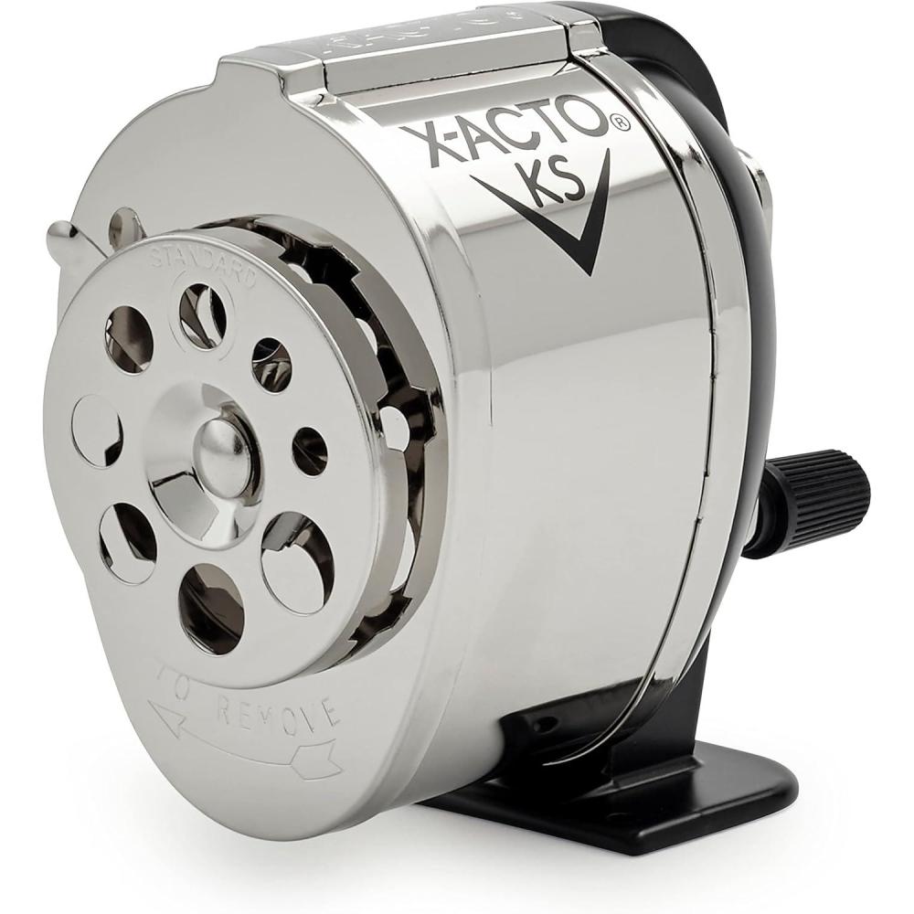 Engineered for everyday dependability, the X-ACTO KS Manual Pencil Sharpener is built to meet the demands of high-volume environments. The classic classroom sharpener, the X-ACTO KS Manual utilizes dual hardened helical cutters to efficiently sharpen pencils to fine point tips.