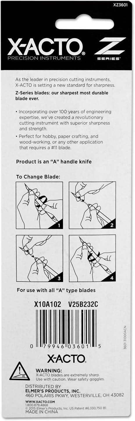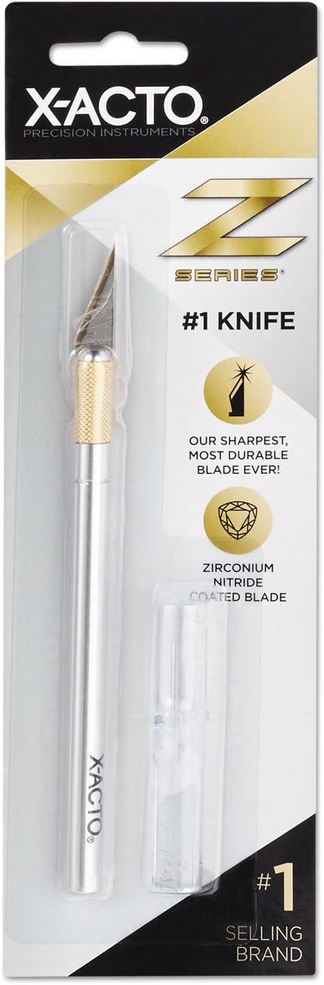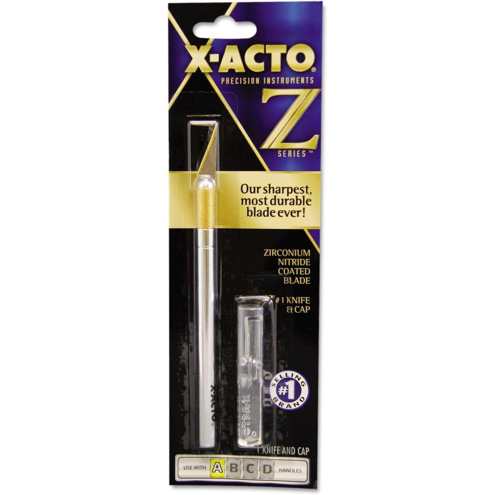 X-ACTO #1 Z-Series Knife, #11 classic fine point zirconium nitride-coated blade, and safety cap