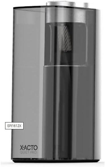 Ultra quiet and break resistant, the X-ACTO Quiet Pro Electric Pencil Sharpener provides less breakage and less noise for less frustrations and distractions. With the SmartStop feature, the pencil sharpener prevents over-sharpening by automatically shutting off the electric motor when the pencil reaches ideal sharpness. Meanwhile, a bold LED light lets you know when the sharpening is complete. The auto-adjust dial works with nearly all pencil sizes while the slip-resistant bottom keeps the pencil sharpener steady. Finally, the SafeStart electric motor stops when the extra-large, easy-to-empty shavings bin is removed. It’s also compatible with colored pencils. Stay sharp with X-ACTO, the #1 electric pencil sharpener brand!